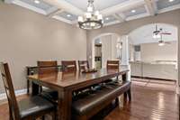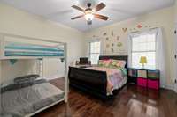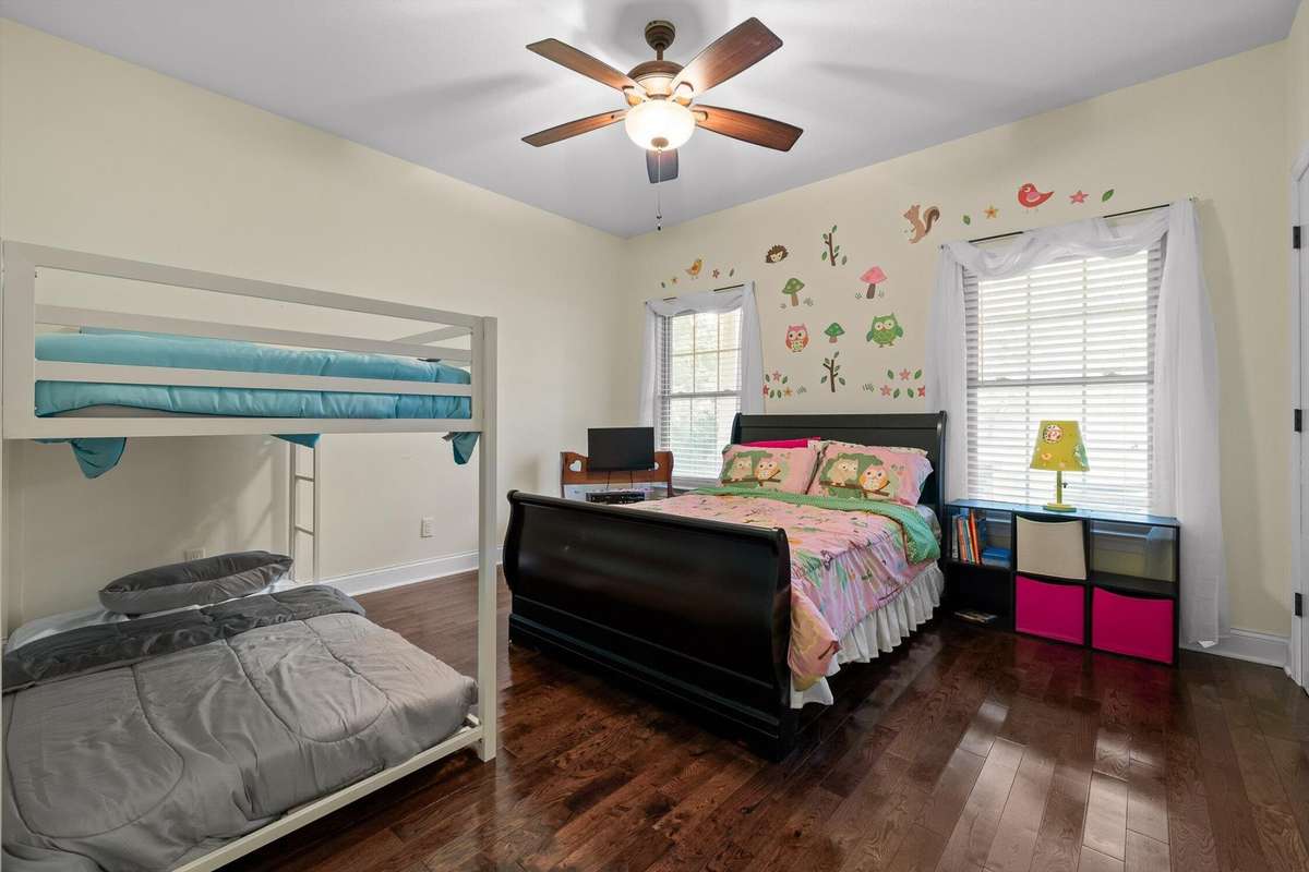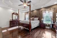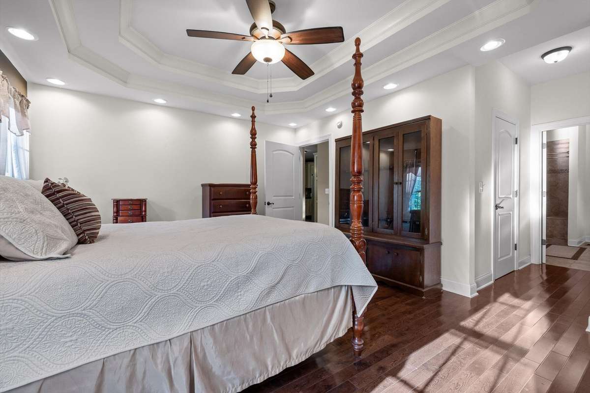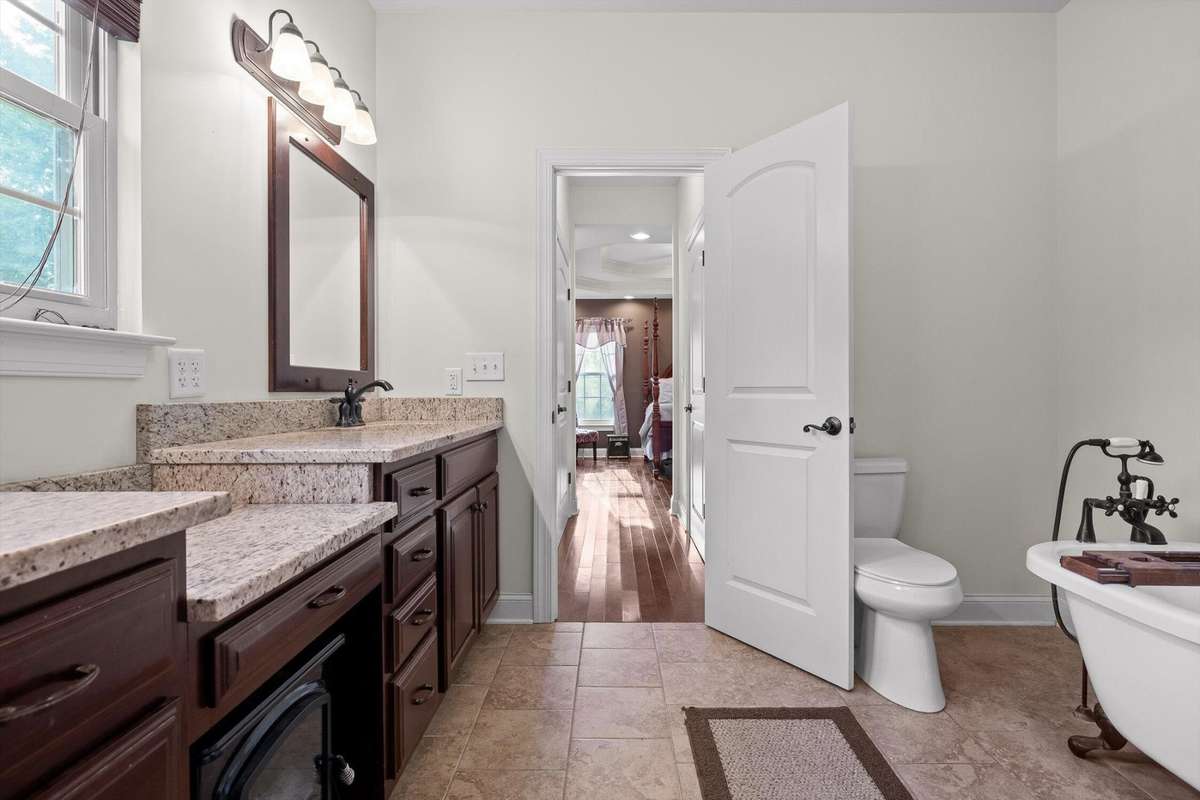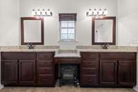 The primary bedroom is a serene escape with trayed ceilings, a ceiling fan, and abundant natural light. The en- suite primary bathroom offers a spa- like feel with dual vanities, a luxurious soaking tub, and an oversized walk- in shower. A second bedroom is also conveniently located on the main level, while the third bedroom enjoys extra privacy as a bonus room above the garage.