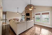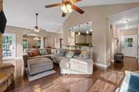 Step into this beautiful 4- bedroom, 2- bathroom home nestled on just under an acre of flat, open land—perfect for enjoying the peace and space of country living. The spacious floorplan welcomes you with vaulted ceilings in the living room, creating an airy and inviting atmosphere centered around a striking stone fireplace, ideal for cozy evenings.