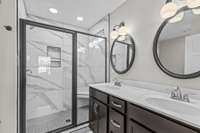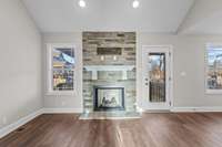 The open- concept layout features a vaulted living room with a stunning stone fireplace and a redesigned kitchen showcasing a large island, upgraded from the original U- shaped plan. The spacious walk- in pantry and generous island offer both style and function, ideal for entertaining or everyday life. Upstairs, you’ll find a versatile bonus room with a half bath and an additional bedroom, perfect for guests, work, or recreation.