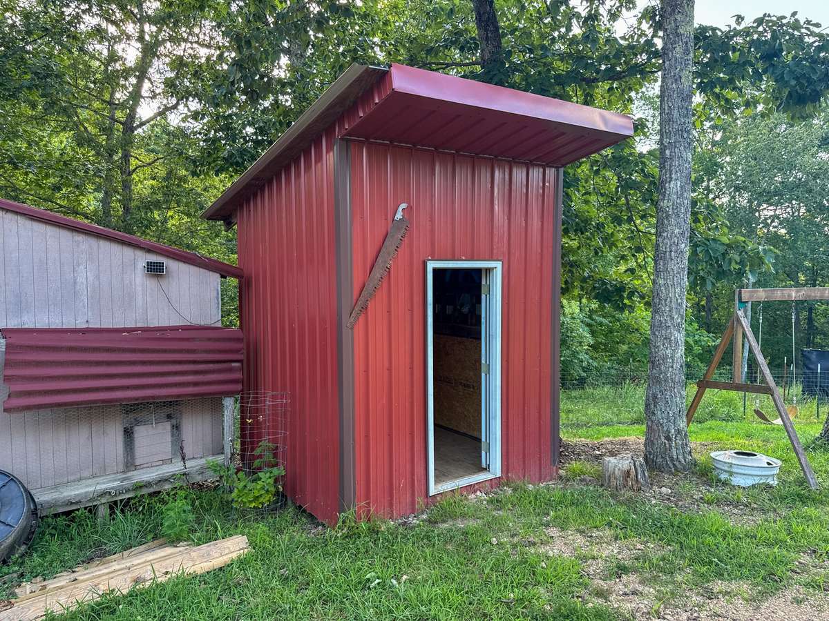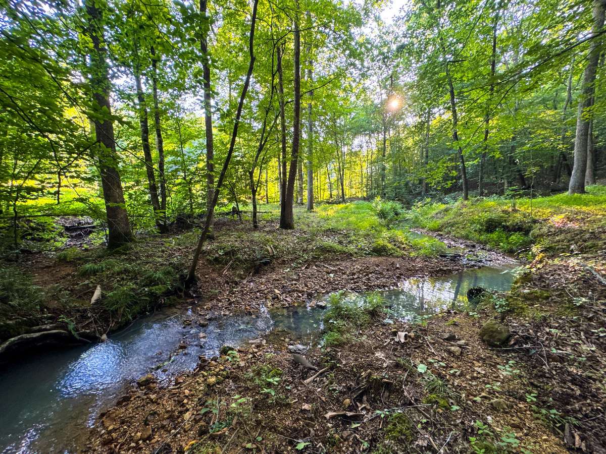 Step out onto the large back porch to enjoy sweeping views of the scenic landscape. The property is well- equipped for hobby farming or homesteading with a chicken coop, dog kennel, storage shed, and multiple livestock pens. A year- round stream winds through the land, complete with a refreshing swimming hole for warm days. A level garden area offers an ideal spot to grow your own vegetables and flowers.