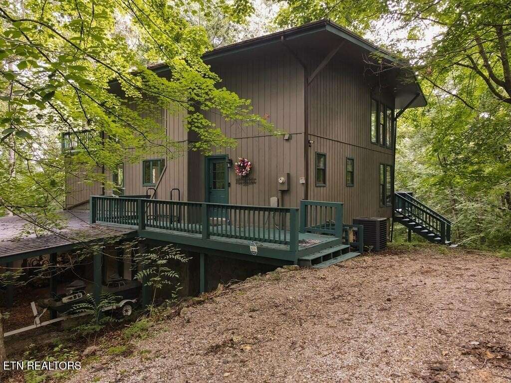 Nestled on 2. 6 acres of serene, private land, this exquisite 3- story home offers a truly unique living experience, blending the comfort of modern luxury with the natural beauty of its surroundings. Imagine waking up each day in your very own treetop sanctuary, where large windows frame panoramic views of the lush landscape, giving you the feeling of living in a treehouse. With 3 fireplaces strategically placed throughout, this home exudes warmth and coziness, perfect for those crisp, peaceful evenings. The open- concept living areas flow effortlessly, creating a perfect space for both entertaining and quiet relaxation. The kitchen features upgraded stainless steel appliances that seamlessly blend style with function. The expansive property ensures total privacy, making it an ideal retreat while still being close enough to the conveniences of everyday life.