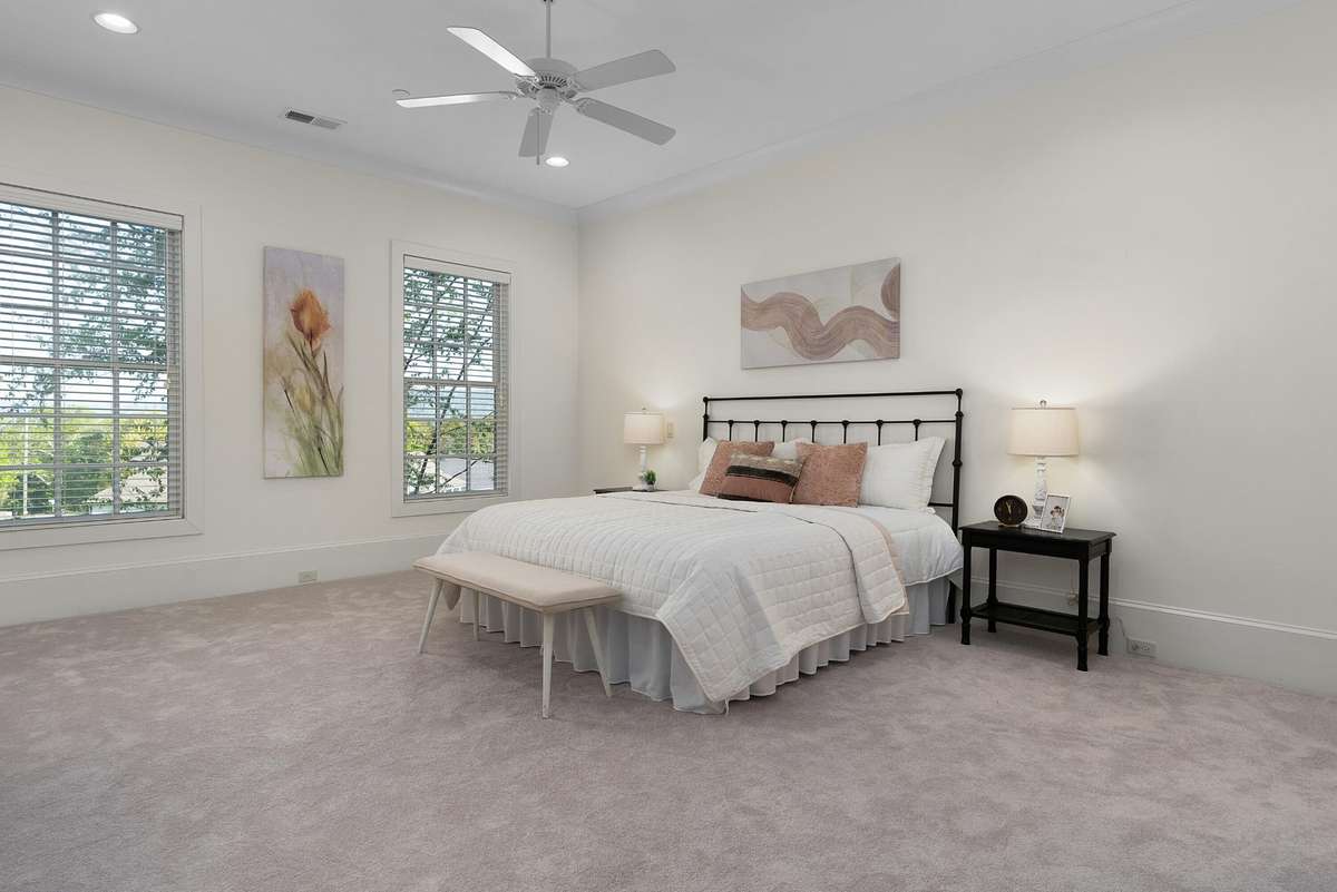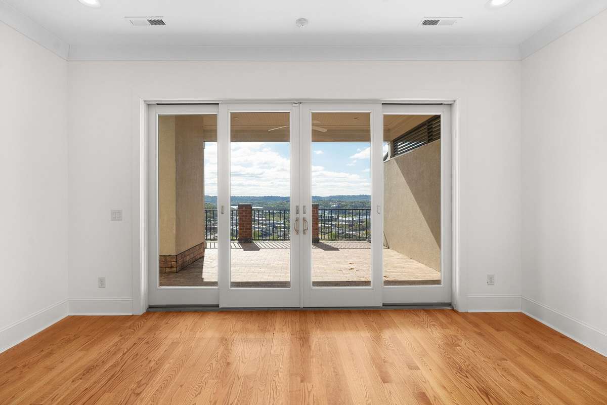 Location, City- Lights Views, Elevator & a 3- Car Garage! Amazing views of the bridges across the Tennessee River to downtown Chattanooga and the mountains beyond from this spacious 3 bedroom, 3. 5 bath condo at the desirable River Point development on Stringer' s Ridge just minutes from the shopping and restaurants of the North Shore, schools, parks, hospitals, and downtown Chattanooga. This beautiful condo boasts hardwoods in the living areas, new carpet in the bedrooms, crown molding throughout most of the unit, an open floor plan, primary suite on the main, an elevator, fantastic outdoor living spaces and both a double and single bay garage. Your tour of the unit begins with entry from the second- floor common landing to the dedicated foyer with the powder room and elevator on the left and the main hallway and staircase on the right. This main hallway leads to the primary suite, a large laundry room and the wonderfully open kitchen, breakfast, living and dining rooms. The kitchen has a large center island, tile backsplash, under- cabinet lighting, stainless GE Monogram appliances, including the 6- burner gas cooktop, convection wall oven, microwave and built- in refrigerator, soft close cabinetry, and a stainless farm sink. The breakfast area has a decorative chandelier and sliding glass doors to the covered balcony where you can enjoy a meal while taking in the panoramic views. This view is replicated in the hand painted mural in the formal dining room which is also visible from the great room. The great room has a gas fireplace and built- in cabinetry and rounds out the open living concept. The primary bedroom has a large walk- in closet with organizer system and a full bath with a dual granite vanity, a walk- in jetted tub, a separate shower with tile surround, and a private water closet. Head upstairs where you will find an office with built- in workspace, a bedroom with a private bath and access to the balcony, a 3rd bedroom, a full hall bath, and a great bonus or fami