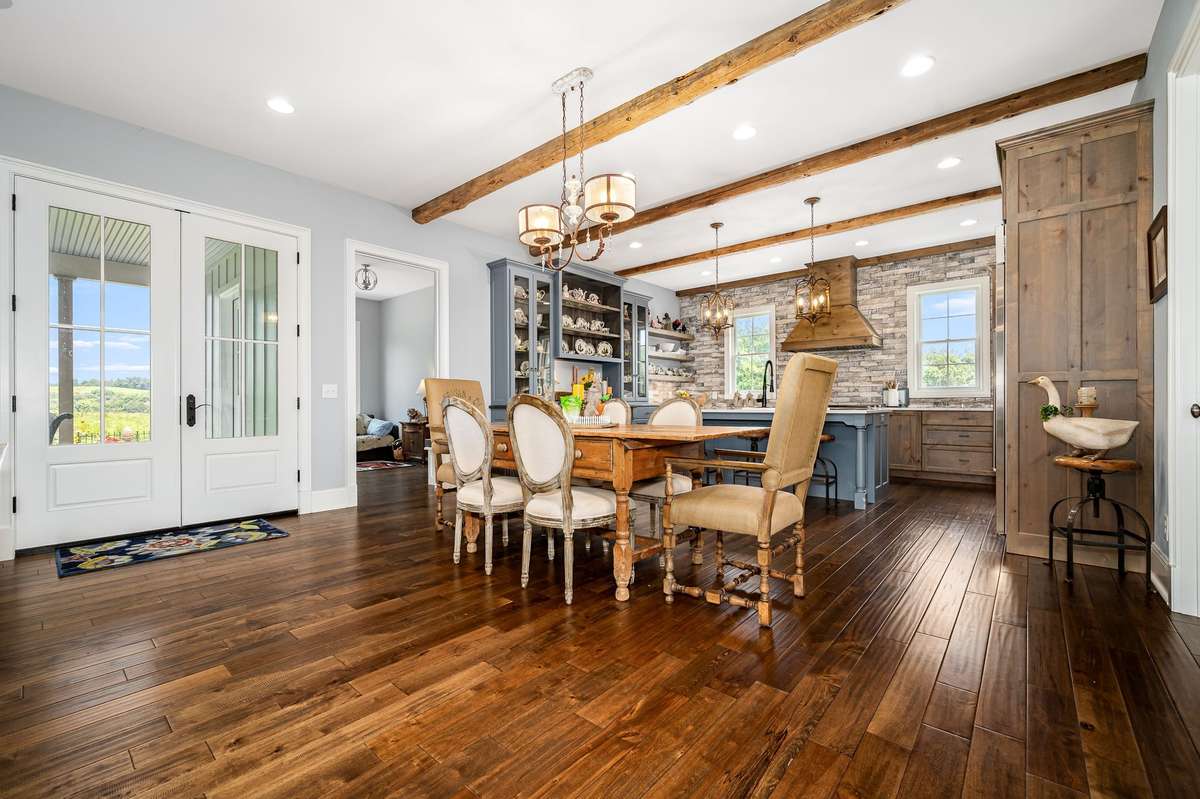Welcome to your dream estate- an exquisite 4, 900- square- foot stone and brick residence that marries French- country charm with today' s most sought- after conveniences. Nestled on a 6+/ acre lot with hillside views. This home' s stone and brick facade and sweeping covered porches invites you inside to discover an impeccably designed interior, where every detail has been thoughtfully curated. Walking through the front door you encounter the open plan living and dining room with beautiful hardwood floors throughout the first floor, connected with the gourmet chef' s kitchen with custom cabinetry, late 1700s reclaimed beams used throughout the first floor. The primary retreat features vaulted ceilings w/ beams, double walk- in closets and a spa- inspired bath. Upstairs you will find a relaxing den area with two large bedrooms each with full baths and walk- in closets. Truely Unmatched Craftmanship from the reclaimed timber ceiling beams to the custom millwork in the cabinetry and trim. Don' t miss the opportunity to make this exceptional French- country manor your own! SEE Virtual Floor Plan Tour.