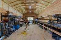 Outside, the land is thoughtfully designed for both leisure and utility. Tranquil views, 6 horse STABLES, pens for livestock, and a CHICKEN COOP provide everything you need for a hobby farm or homestead. The property also features gorgeous raised garden beds, a 2, 400 sq ft BARN, and a 600 sq ft WORKSHOP.