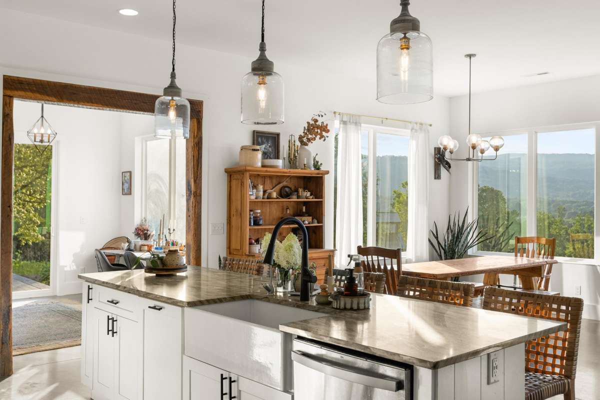 The main residence offers 4, 150 sq ft of rustic elegance, featuring 5 spacious bedrooms and 3. 5 baths with RECLAIMED WOOD accents, spray foam insulation, and an open- concept floor plan that feels both expansive and intimate. The chef' s kitchen is a showstopper—complete with a massive island, floating shelves, pantry, and a gas range, all bathed in natural light. The WOOD- BURNING FIREPLACE a large media/ playroom, and a flex space perfect for a study, craft room, or reading nook. Additional custom touches like a drop- zone mudroom, built- in shoe cubbies, and reclaimed trim details set this home apart.