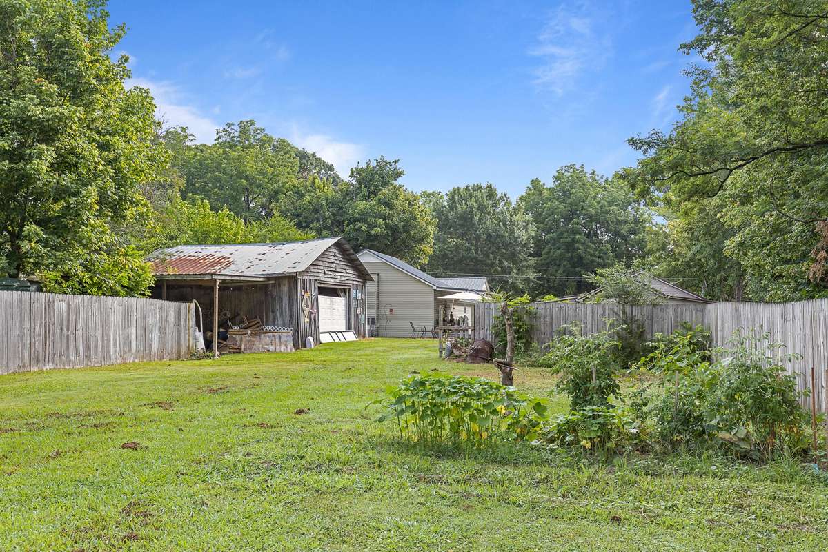 Included here is an extra . 17- acre lot, which features a fully fenced backyard that offers privacy and security—perfect for pets, kids, or outdoor gatherings. There' s also a well- tended garden for growing your own vegetables or flowers, as well as a large storage shed/ garage that provides plenty of space for tools, equipment, or hobbies. A detached two- car garage and driveway offer secure parking and additional storage.
