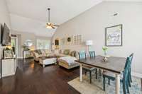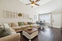 The spacious L- shaped kitchen features all major appliances, generous counter space, and ample cabinetry—ideal for both daily meals and entertaining. The large living room provides flexible setup options, including space for a dining table or home office.