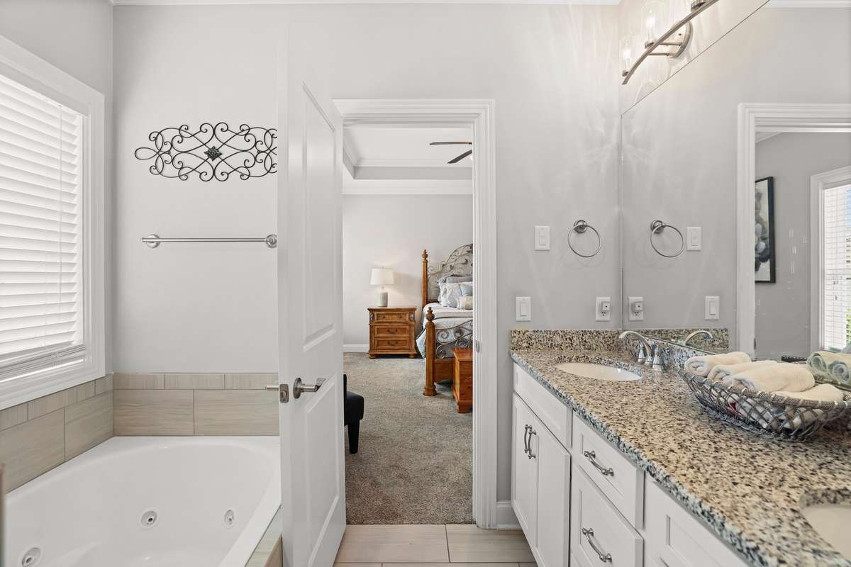 Reduced price ! Welcome to this beautifully maintained 3- bedroom, 2- bath home offering 1, 651 square feet of comfortable living space. Step into the bright and inviting living room filled with natural light and enhanced by a stylish tray ceiling. Two guest bedrooms are located at the front of the home, sharing a convenient hallway bathroom. Just beyond, the dining area flows seamlessly into the kitchen, which features granite countertops, crisp white cabinets, a spacious pantry, and a large center island perfect for gathering and meal prep. The main- floor primary suite offers a peaceful retreat with its own en- suite bathroom, complete with a jacuzzi tub, separate shower, and dual vanity. Step outside to enjoy the covered back patio and fully fenced backyard, ideal for entertaining or relaxing in privacy. The attached 2- car garage adds storage and convenience to this well- designed home. Don’t miss this one! Up to 1% lender credit on the loan amount when buyer uses Seller' s Preferred Lender.