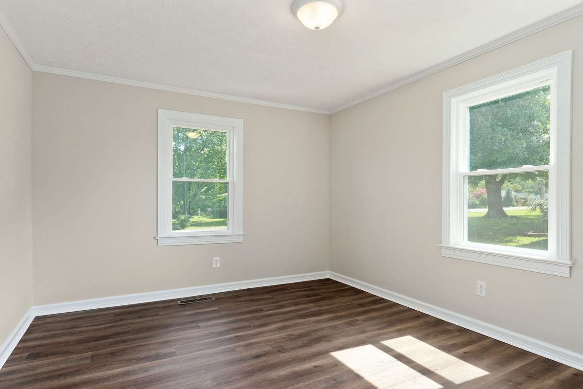 This two- bedroom, one- bath brick home with a metal roof is situated on a generous 0. 71- acre lot. The property has been completely renovated, boasting new CHA, water heater, plumbing, electrical, bathroom, kitchen, windows, flooring, and paint throughout. A complete list of the remodel is available in the documents below. If square footage is a key consideration, we advise measuring and having the buyer and buyer' s agent verify all pertinent information.