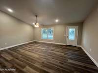 Soaring vaulted ceilings, recessed lighting, LVP flooring, and stylish cabinetry create an inviting and modern interior. The spacious master suite boasts a private en suite bath and a generous walk- in closet. Two covered porches provide the perfect spots to unwind and soak in the tranquility of your . 76- acre corner lot.