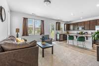 The kitchen offers ample countertop space and plenty of cabinets for storage, along with a spacious pantry. Upgrades include luxury vinyl plank flooring, plush upgraded carpeting, granite countertops, and ceramic tile in the bathrooms.