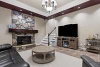 Upstairs, the expansive primary suite features dual closets, a soaking tub, tiled shower, and double vanities. Four additional bedrooms offer large closets and plenty of natural light. The fully finished basement is a dream for multi- generational living or older kids, with its own den and fireplace, dedicated office, fifth bedroom, full bathroom, and walk- out patio access. Two oversized storage rooms provide ideal space for lawn equipment, tools, or a workshop.
