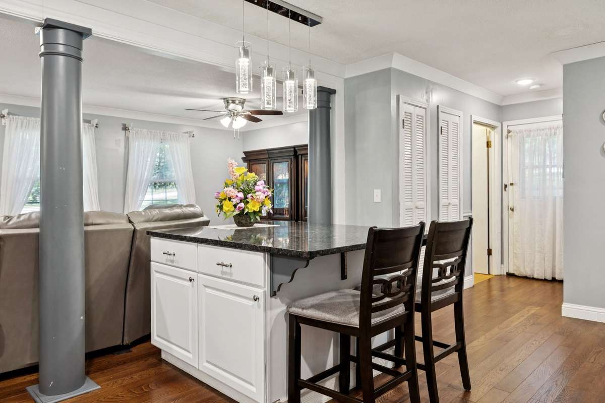 This welcoming home is located within the Rustling Oaks Community and has such delightful curb appeal. Private driveway to the attached two car garage in the back of the home. When you enter through the front door you are greeted by the open floor plan you' ll notice the family room is open to the kitchen and dining room space. The kitchen has updated granite countertops and gorgeous hardwood floors throughout main level. Every room is oversized and open allowing extreme versatility based on your lifestyle. Take notice that the furniture is quite large and yet there is still room galore. There is also a large pantry and two additional pantry spaces and large island with a breakfast bar space. From the dining room area you can enjoy your covered patio space that overlooks the serene backyard which has been partially fenced in for kids to play safely or for fur babies to run free, or just simply a feeling of security in your own private yard. On the main floor there are two very large bedrooms both with walk in closets, as well as two bathrooms. Downstairs in the basement is a 3rd bedroom space and half bathroom, currently being used in an open concept manner which is easy to close back. There is also a large family room space with a fireplace. The laundry room is located downstairs as well. This is a home with so much to offer. Schedule your tour today.