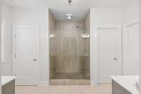 Inside, you’ll find rich hardwood flooring throughout, creating a warm and elegant atmosphere. The kitchen boasts granite countertops and a generous island—perfect for meal prep, casual dining, or entertaining guests. The spacious master suite provides a true retreat, complete with double vanities and a walk- in tile shower for a luxurious, spa- like feel.