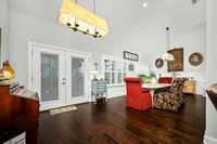 The kitchen boasts a walk- in pantry and overlooks the main living space, ideal for entertaining! The spacious primary suite offers a serene retreat with a large walk- in closet and a spa- like ensuite. Enjoy peaceful mornings or unwind in the evenings on the screened- in back porch.