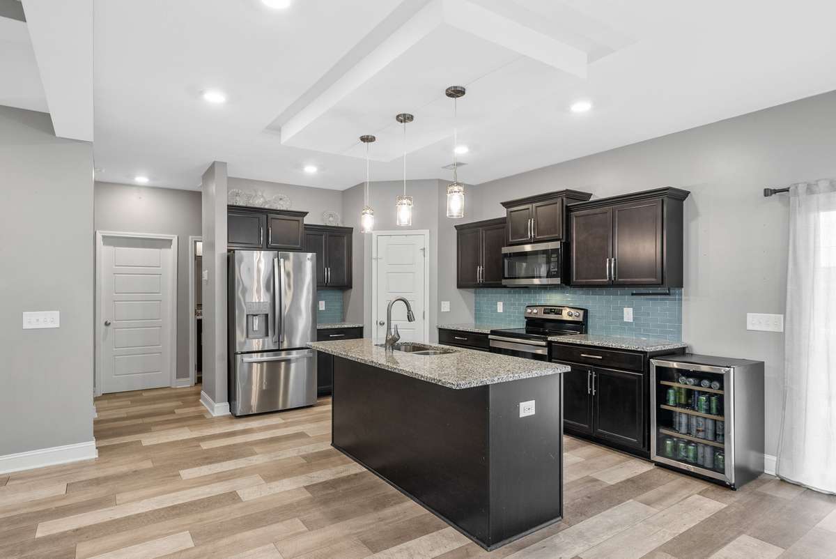 Tucked away on a serene cul- de- sac, this stunning 4- bedroom, 2. 5- bathroom home offers the perfect combination of style and functionality. Start your mornings or unwind at night on the cozy covered front porch. Inside, you will enter into an open floor plan boasting coffered ceilings that add sophistication and charm. The kitchen is a chef’s dream with stainless steel appliances, a generously sized pantry, and an expansive island perfect for cooking or helping with the kids' homework. The first- floor master suite offers a large walk- in closet and a luxurious bathroom with double vanities and a tiled shower. Custom built ins on the first floor will make sure shoes piling up by the door is a thing of the past! Upstairs, three additional bedrooms and a full bathroom provide plenty of space for family and guests. The backyard is an entertainer’s dream with a covered patio, above ground pool, and deck for lounging. Green thumbs will love the raised garden beds, ideal for growing your favorite seasonal veggies. Mature trees create the perfect backdrop for your outdoor oasis. Don' t miss this one!