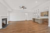 Enjoy peaceful mornings or gatherings with loved ones on the oversized covered back deck, and cozy up by the elegant fireplace during cooler months. The home features a flexible bonus room—ideal as a home office, playroom, or hobby space—and a formal dining room with a stunning coffered ceiling.