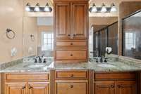 HUGE PRICE DROP! MAKE AN OFFER! This beautiful home has brand new carpet, fresh paint and no backyard neighbors! Spacious entryway with wood flooring throughout office, formal dining and living area. Large eat in kitchen with HUGE island, granite countertops, tile backsplash, tile floors & TONS of cabinet space! Guest bedroom with full bath downstairs along with laundry. Upstairs the large primary bedroom has a double tray ceiling, walk in closet, double vanities with granite counters, large tile shower & a jetted tub! Massive bonus room or 5th bedroom! Custom backyard features a large deck w/ pergola, 2 patios, custom stonework, privacy fence with brick columns and the play set remains!