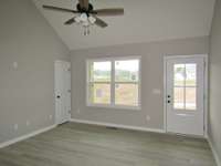 New construction! House features open floor plan with liviing room with vaulted ceiling, kitchen and dining area, vinyl plank flooring throughout, 3 bedrooms, 2 baths, utility, covered porch and rear deck on nice lot.