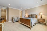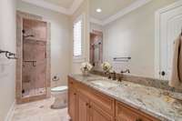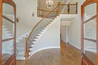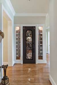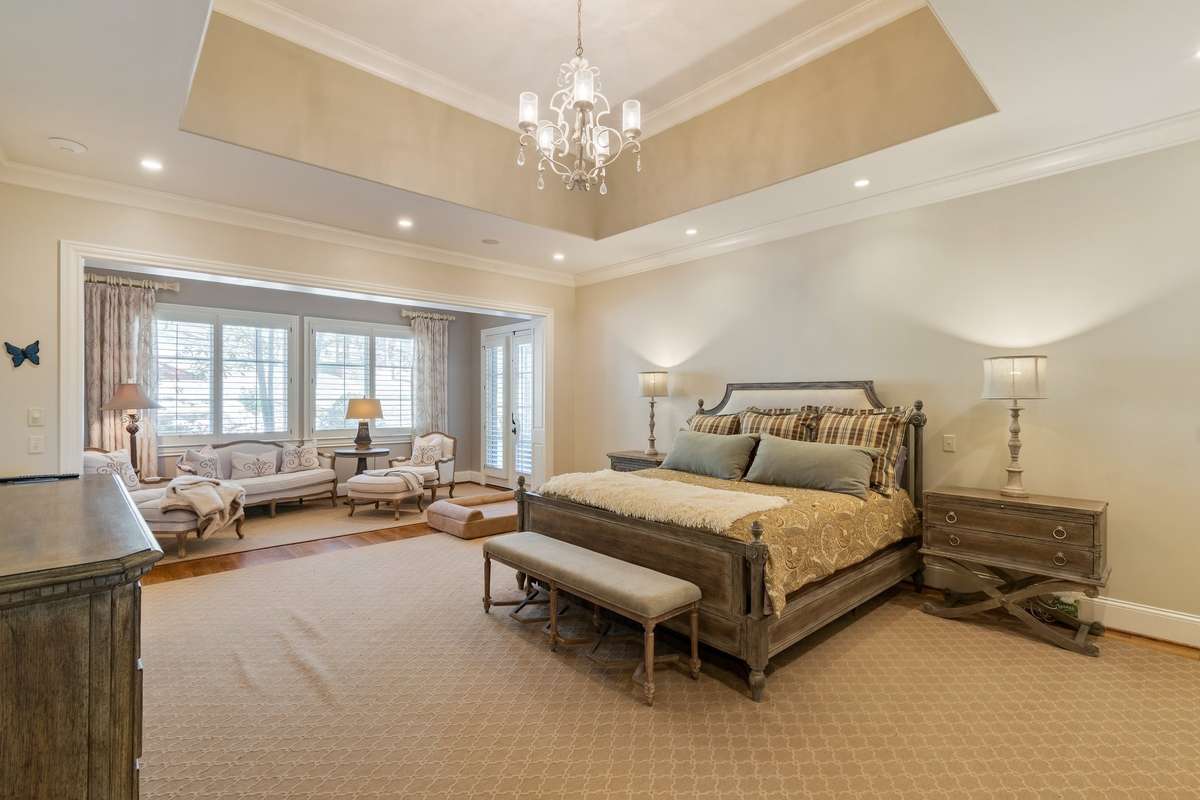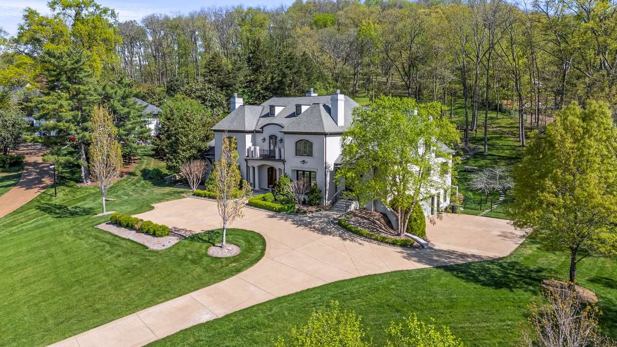 Beautiful European Villa in lovely gated Cambridge Downs development. Incredible views/ privacy on 2 acres! Wonderful floor plan with primary suite & other BR suite on main level. Family rm w/ rough- hewn cedar beams/ soaring ceiling & open to eating area & a fabulous large kitchen! Wine room convenient for entertaining on main level, screened porch with fireplace & spectacular pool/ hot tub, rock waterfall & outdoor fireplace. All 6BRs en suites, ELEVATOR to all levels, 4- car garage & fully fenced back yard.  SO much more!