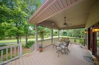 The sunroom invites you in with its large windows overlooking the golf course. Step outside onto the composite decking, ideal for entertaining or simply to soak up the view of Hole # 1 of The Brae featuring its own large pond with a fountain in the middle.