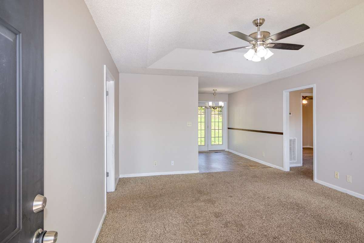 This charming ranch- style home is move- in ready and waiting for its next owner. Relax on the covered front porch, ideal for cozy mornings and warm evenings. Inside, you’ll find new window blinds, abundant natural light, a quaint dining area, and a functional galley kitchen. The spacious living room features elegant coffered ceilings, while the primary bedroom includes its own full bathroom. A large, fenced backyard offers plenty of space for outdoor entertaining.