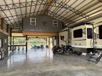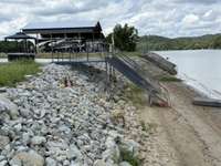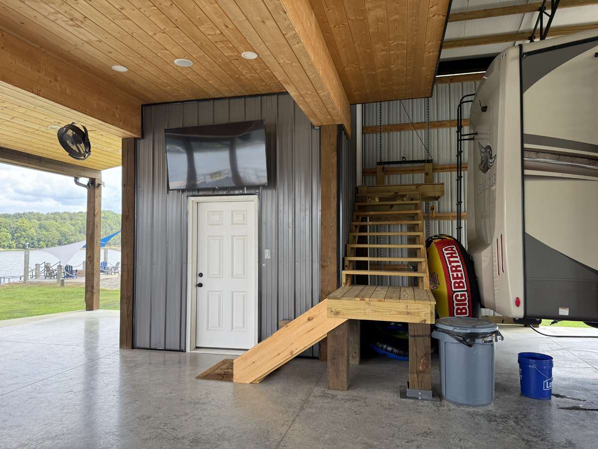 The front lot 46 A features a spacious 40x80 building with a loft bedroom and living room accessible by a handicap elevator, a full kitchen with mini split heat and air, bathroom/ laundry room, storage room, bar top seating area on the Tennessee River and two 50AMP hookups with two septic dumps. All TVs, appliances, furniture, grill, and chairs convey ( XL fire black pit excluded) . You' ll also enjoy, planter boxes, and recreational extras like kayaks!