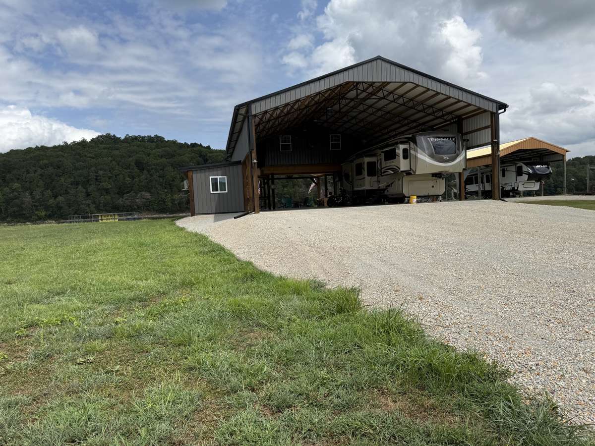 The front lot 46 A features a spacious 40x80 building with a loft bedroom and living room accessible by a handicap elevator, a full kitchen with mini split heat and air, bathroom/ laundry room, storage room, bar top seating area on the Tennessee River and two 50AMP hookups with two septic dumps. All TVs, appliances, furniture, grill, and chairs convey ( XL fire black pit excluded) . You' ll also enjoy, planter boxes, and recreational extras like kayaks!