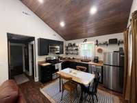 Adorable Custom Build Cabin nestled on 5+ wooded acres with a covered front porch to enjoy nature. Two spacious bedrooms. Full Bathroom w/ shower/ combo & single vanity with Japanese kiln firewood for towel wall in bathroom. An open floor concept with handmade planked wood floors with a multifunctional sink the kitchen with filtered drinking water, new SS appliances, soft close kitchen drawers with a good size pantry with solid wood doors , a smart thermostat and an on- demand tankless water heater also Hookups for a stackable washer & dryer. Keyless entry, Ceiling fans in all rooms, Several state parks close by, offer hiking trails ( Savage Gulf, South Cumberland State Park) , and waterfalls ( Greeter and Laurel Falls) , with picnic facilities and camping. 25 mins to Caverns Music Venue, 20 mins to Monteagle and 45 mins from Chattanooga, 1. 5hr to Nashville. Private entrance w/ lots of trees and privacy very close to town for shopping and eating. Great for a short term rental!