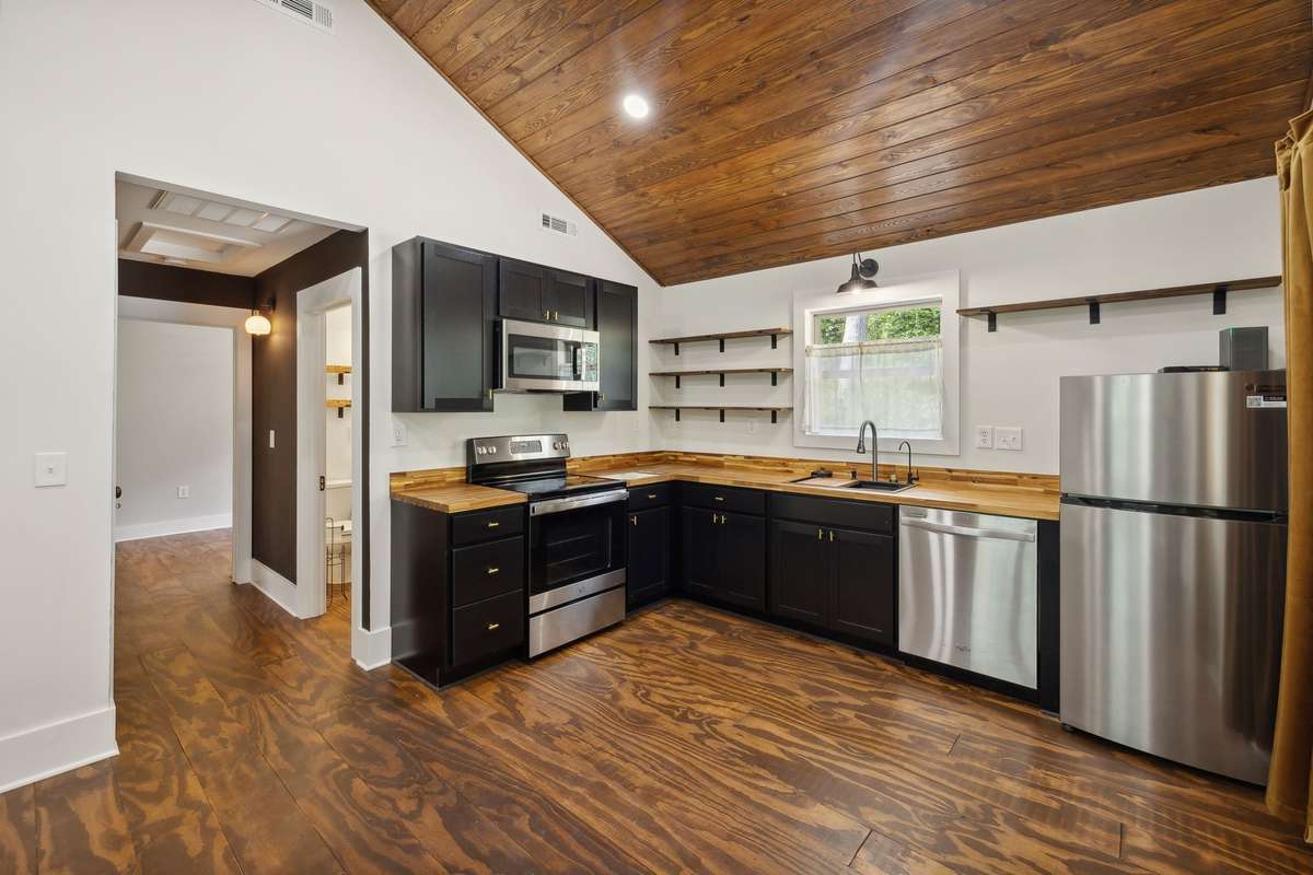 Adorable Custom Build Cabin nestled on 5+ wooded acres with a covered front porch to enjoy nature. Two spacious bedrooms. Full Bathroom w/ shower/ combo & single vanity with Japanese kiln firewood for towel wall in bathroom. An open floor concept with handmade planked wood floors with a multifunctional sink the kitchen with filtered drinking water, new SS appliances, soft close kitchen drawers with a good size pantry with solid wood doors , a smart thermostat and an on- demand tankless water heater also Hookups for a stackable washer & dryer. Keyless entry, Ceiling fans in all rooms, Several state parks close by, offer hiking trails ( Savage Gulf, South Cumberland State Park) , and waterfalls ( Greeter and Laurel Falls) , with picnic facilities and camping. 25 mins to Caverns Music Venue, 20 mins to Monteagle and 45 mins from Chattanooga, 1. 5hr to Nashville. Private entrance w/ lots of trees and privacy very close to town for shopping and eating. Great for a short term rental!