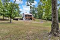 Furnished 4 bedroom home with basement located just minutes from the Tennessee River. Open floor plan with wood burning fireplace. Gorgeous crown molding. Master bedroom features a full bath and bay window with sitting area. Guest bedroom on main level has a private half bath. Drink your coffee and watch the deer from the screened back deck with TV hook up. Covered front porch. Large covered parking for RV or boat. Paved circle driveway. Refrigerator, washer, dryer, dishwasher, stove/ oven, furniture, TV, hot tub, deck furniture and carport remains. Full unfinished basement with garage door is perfect for bonus room, workshop or man cave.