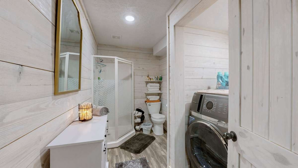 Immaculate property, meticulously updated and used as a 3 bedroom with a lovely, brand new guesthouse, dock permittable lot on Kentucky Lake. A private slice of Tennessee - lake- life awaits you, hunting, fishing, abundant turkey, deer, ducks and fish. Peace and adventures await at this gem of a property. Two separate dwellings and an RV power hook up, the newly built studio/ mother- in- law suite/ office that is exquisite with vaulted ceilings and a beautifully epoxied floor. The lovely main house is surrounded by a perennial garden, cypress and cedar trees and has two bedrooms on the main floor with a spacious room, used as the primary suite, and office on the second floor. The open concept living in the kitchen, dining and living areas is fabulous and is wonderful for entertaining. This home is built to last and efficient with block exterior walls, metal siding and a metal roof only 4 years old. After a fun day on the lake come home to an outdoor shower and lovely landscape. The property boasts 2 lots where the home, mother- in- law suite and carport are built and also includes a lot across the street which has a picnic area and is the lot which is dock permittable, and a fourth lot which is the wooded lot beside the carport. This wooded area gives the home added privacy. There are also side- by- side ( ATV) trails directly across the street for even more adventures near the lake. Call today to explore this oasis!
