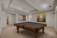 The walk- out lower level basement is ideal for multigenerational living or a teen/ in- law suite, featuring a full kitchen, private garage entry, large living area, game room, bedroom with fireplace, two full baths, flex/ fitness room, and home gym.