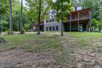 The master suite has a shower for a quick wash, a garden tub for a longer relaxing bath and access to the master bedroom closet. The large master bedroom has windows opening to a wrap- around covered porch and the quiet of the lake.