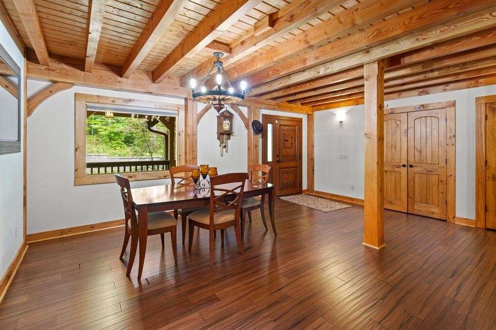 A private drive leads to this 3033 Sq ft post and beam lakeside retreat set within 3. 61 secluded acres covered with mature hardwood trees on Fredonia Mountain. The 3- bedroom 2. 5- bath craftsman home is move- in ready with a new metal roof, new exterior paint, and landscape touch- ups. The floor to ceiling windows surrounded by post and beam and tongue and groove ceilings open onto a tranquil 7 ac stocked lake.