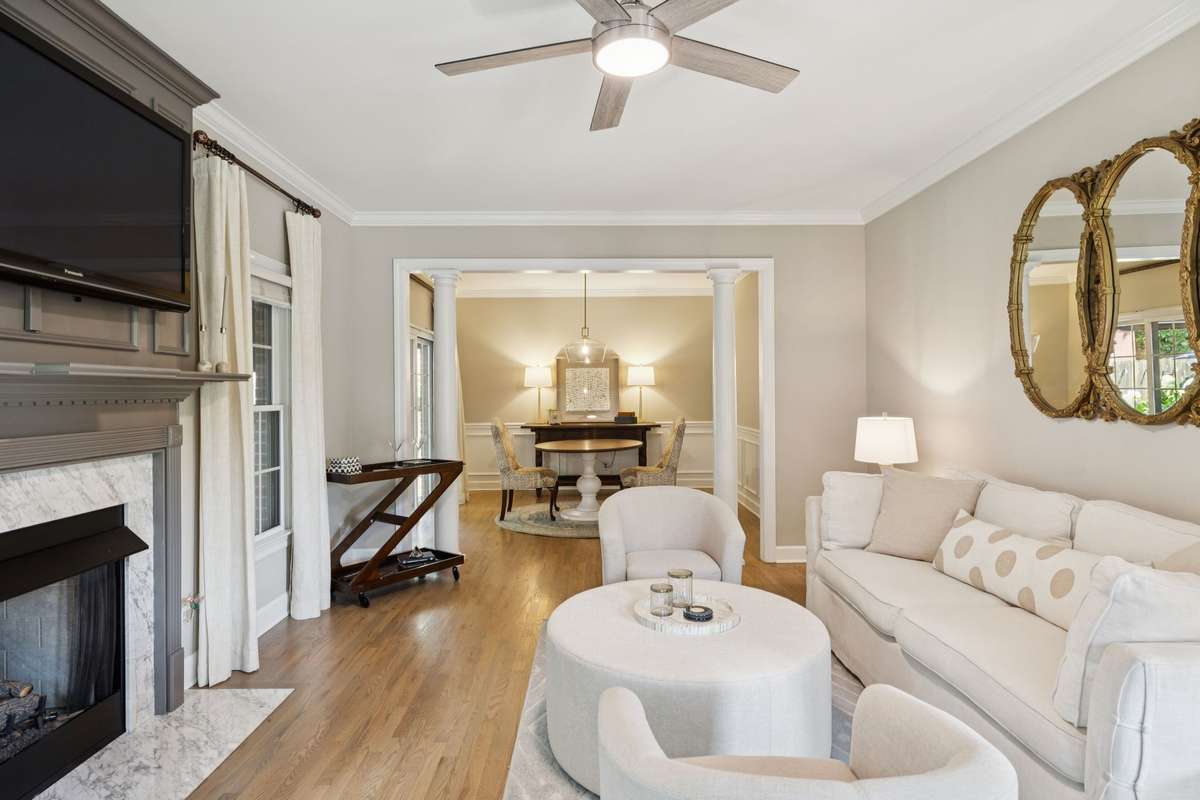 The main level offers true one- level living, while the renovated upstairs bathroom ensures guests are hosted in style. An oversized bonus room off the kitchen is ideal for office space + a media area for at- home movie nights. All of this extra space is located above the 3- car garage with a built- in workshop, storage closet and direct access to the backyard. All of this just a short walk—or golf cart ride—from the charm and energy of Columbia’s downtown square.