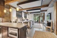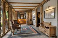 DARK HORSE STUDIO: Built in 1998, and is world- renowned as a destination for A- list recording artists from all around the world. Like The Manor Estate, this approximately 8900 square- foot building is a combination of heavy post and beam construction but with a more rustic feel, creating a unique and immersive environment for artists. For decades, this space has fostered creativity and focus, allowing artists to escape the hustle and bustle of everyday life and find inspiration in a serene, nature- filled setting. This unique building consists of public areas, studios, and two separate sleeping quarters, along with multiple porches and patios.