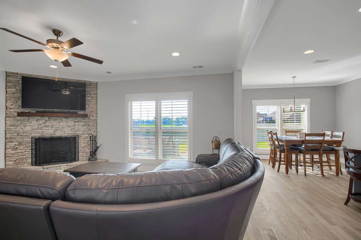 Inside, you’ll find a spacious open layout with a welcoming foyer, cozy fireplace, and stunning hardwood floors throughout the main level and stairs. The gourmet kitchen features granite countertops and custom cabinetry, while the formal dining and breakfast rooms offer flexibility for gatherings. The luxurious primary suite includes double vanities, a tiled shower, and walk- in closet.