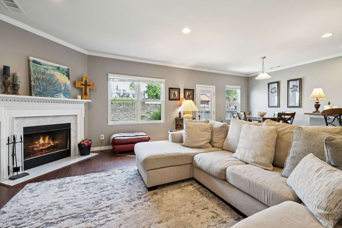 Boosting nine- foot ceilings and an open plan, including a great room with a gas fireplace, this home offers a comfortable environment for all. With the primary suite downstairs and two secondary bedrooms upstairs, this house is adaptable for all, flexibility for hobbies or guests. A fully fenced in backyard is great for pets as well!