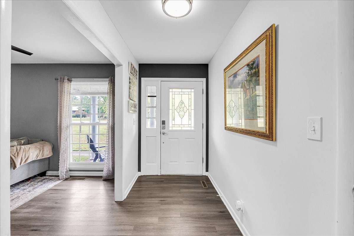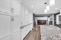 Large 4 bedroom/ 3. 5 bath brick home located in a phenomenal area and neighborhood. Just off the welcoming foyer the sits a large living room with built in at one end and beautiful LVP throughout most of the home. The kitchen has been fully renovated recently with an abundance of beautiful cabinets, large kitchen island, gas cooktop, double ovens, great tile backsplash, lots of recessed lighting, all stainless appliances stay with home including built in with wine cooler. Just off the kitchen is the eat in dining space with a gas fireplace and wood beam accents. Primary bedroom features a full bath with double vanities, tile walk in shower and whirlpool tub and large walk in closet. There is a second bedroom with a full bath which could also be used as primary suite. All four bedrooms are spacious and feature great storage. The lower level features a den/ family room with built in cabinets and an additional refrigerator that stays with the home. The home has a large lot that with an oversized 2 car carport, large deck, and storage building that stays with the home. The home sits in a great neighborhood with well kept homes that sit in a loop with only one entry street with no through traffic.