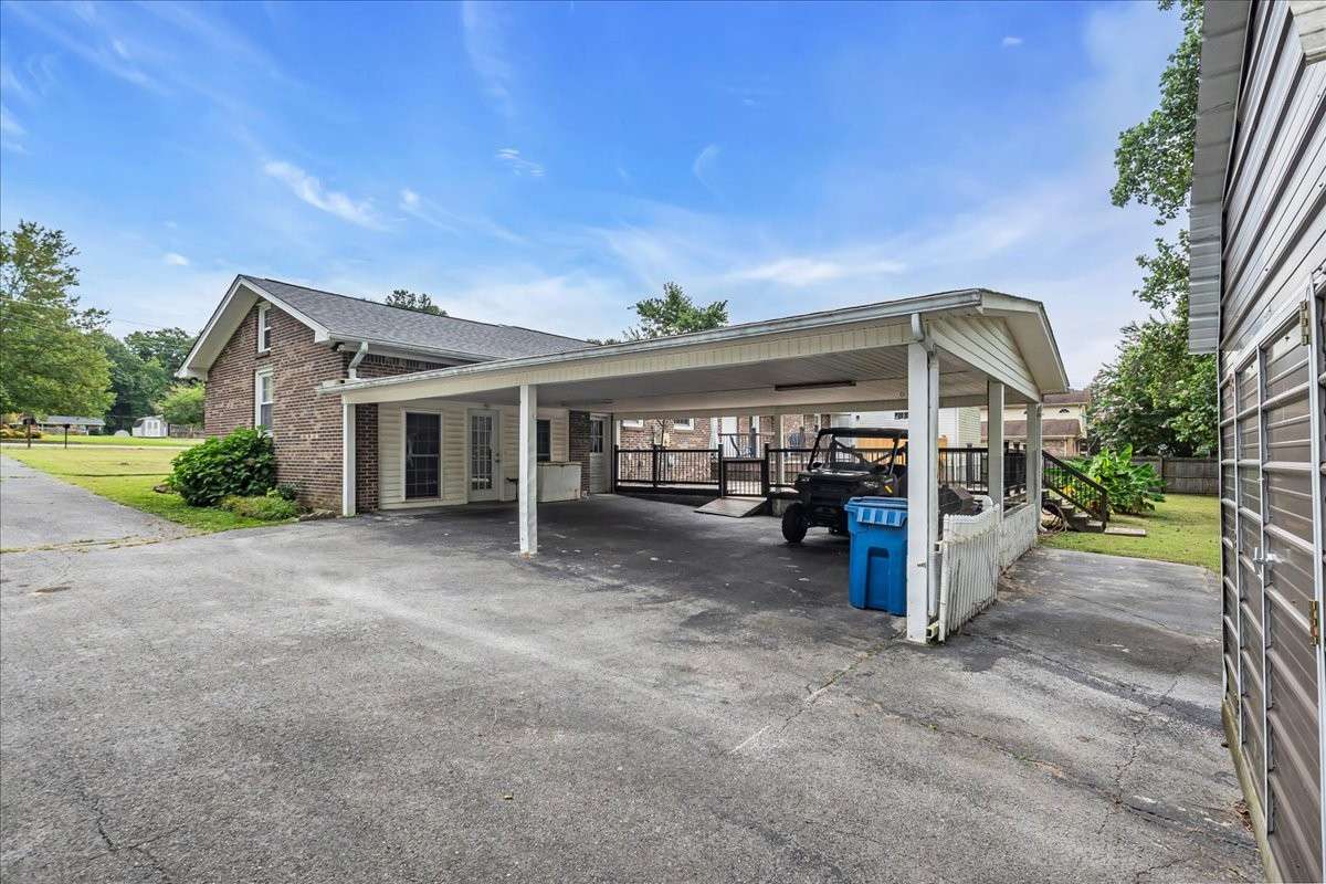 Large 4 bedroom/ 3. 5 bath brick home located in a phenomenal area and neighborhood. Just off the welcoming foyer the sits a large living room with built in at one end and beautiful LVP throughout most of the home. The kitchen has been fully renovated recently with an abundance of beautiful cabinets, large kitchen island, gas cooktop, double ovens, great tile backsplash, lots of recessed lighting, all stainless appliances stay with home including built in with wine cooler. Just off the kitchen is the eat in dining space with a gas fireplace and wood beam accents. Primary bedroom features a full bath with double vanities, tile walk in shower and whirlpool tub and large walk in closet. There is a second bedroom with a full bath which could also be used as primary suite. All four bedrooms are spacious and feature great storage. The lower level features a den/ family room with built in cabinets and an additional refrigerator that stays with the home. The home has a large lot that with an oversized 2 car carport, large deck, and storage building that stays with the home. The home sits in a great neighborhood with well kept homes that sit in a loop with only one entry street with no through traffic.