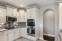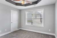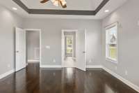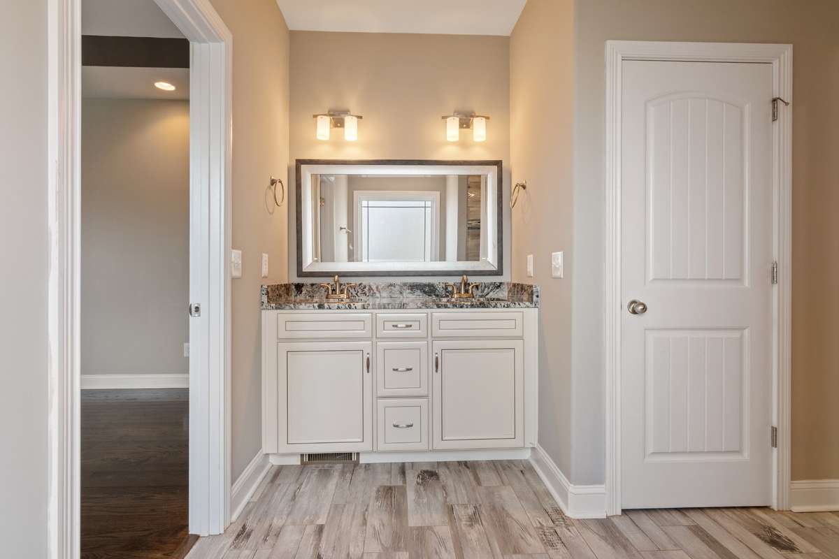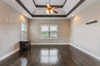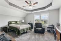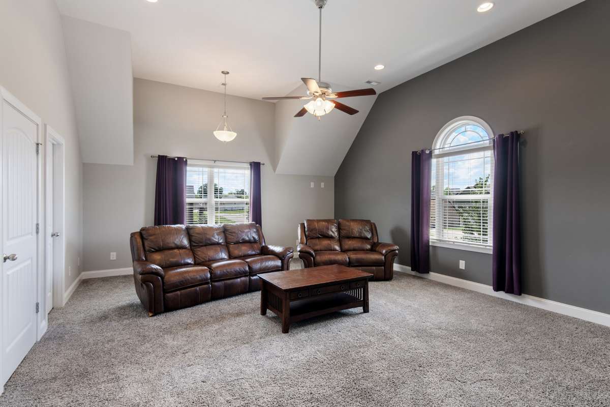The main- level primary suite is a private retreat featuring a generous bedroom, luxurious bath with dual vanities, jetted tub, separate shower, and a walk- in closet with abundant built- in shelving. Four additional bedrooms, along with the bonus room, offer flexibility for guests, hobbies, or a home office. The large laundry room features matching cabinetry, providing style and extra storage.