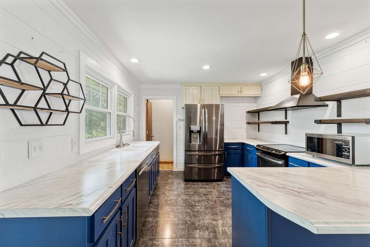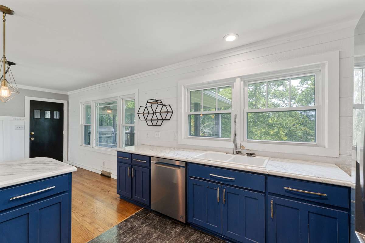 Just south of the Fayetteville town square and convenient to Huntsville and Ardmore, this 4- bedroom, 2- bath home offers space, character, and room to make it your own. The semi open- concept layout connects the living room, dining area, and kitchen, separated by a functional peninsula—perfect for gatherings and daily living. The central bedroom features built- in bookshelves, ideal for a home office or library.