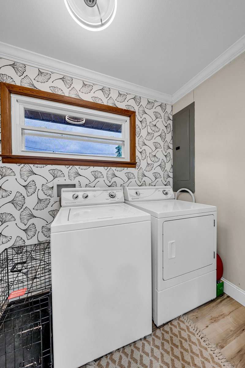 • An updated laundry room that can be tucked away so you have privacy in the adjoining bathroom.