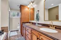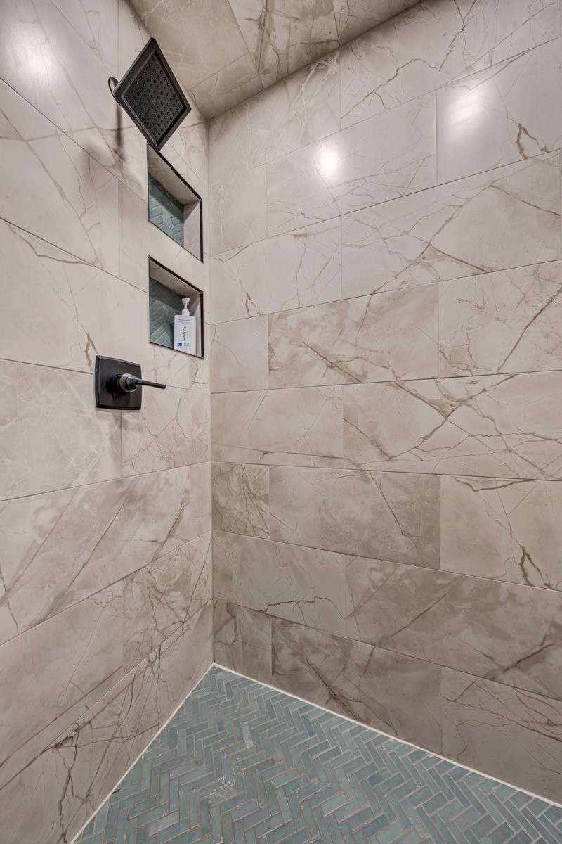 • New ( 2024) tiled main shower with a deep soaker tub.