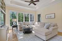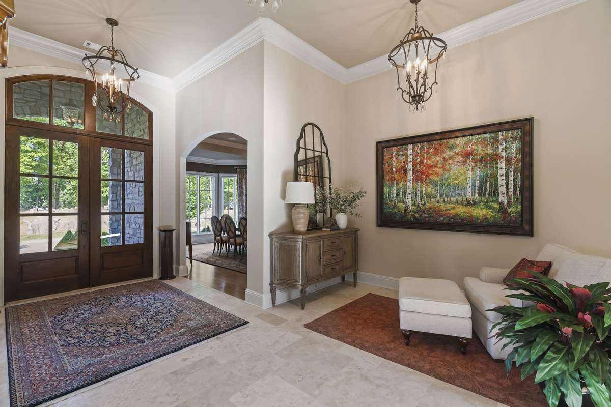 Exquisite custom estate in the gated community of The Grove, designed by Mitchell Barnett and built by Shane McFarland in 2017. Offering 8, 052 sq ft on 1. 3 acres, this home features 5 bedrooms, 5 full & 2 half baths, plus a private 2- bedroom guest house. Gourmet kitchen with large island, high- end appliances & custom cabinetry opens to a vaulted great room with stone fireplace. Main- level primary suite with spa- like bath & walk- in closet. Lower level includes theater, rec room, wet bar & wine cellar. Outdoor living boasts covered patios, balconies & golf course views. 6- car garage. Community amenities include clubhouse, fitness, pool, tennis, golf & trails.