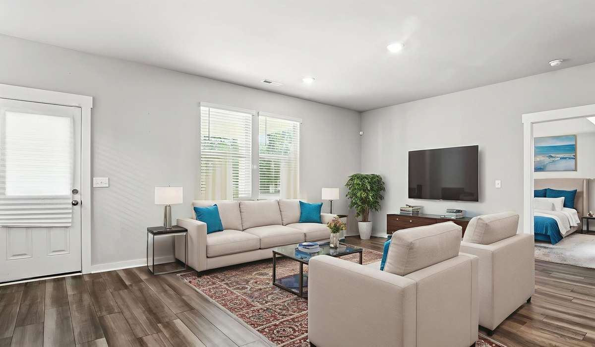 Located in a community with a pool and just 4 miles from both Kroger and Publix, this 2022- built home offers convenience and comfort. Inside, you’ll find an open, light- filled layout with a kitchen featuring stainless appliances, a tile backsplash, island, and pantry. The owner’s suite with spa- like bath is on the main level along with two additional bedrooms. Upstairs includes a spacious bonus room and a bedroom with ensuite bath accessible from the hall—ideal private retreat. Covered patio overlooks backyard with treeline views, plus plenty of storage options throughout the home.