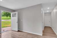Step into a light- filled open- concept living space with brand new flooring, fresh neutral paint, and stylish fixtures. The fully updated kitchen features stainless steel appliances, new cabinetry, and sleek countertops — perfect for everyday living or hosting guests.