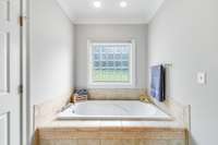 The home itself offers over 3, 800 sq. ft. of thoughtful living space. A dramatic two- story foyer greets you, with a grand staircase & walls of windows that flood the home with light. The kitchen is spacious & inviting with a pantry, breakfast area, and easy flow into the formal dining room & family room. The main- level primary suite is a true retreat, complete with a double vanity, oversized tile walk- in shower & soaking tub. Upstairs, you’ll find four more bedrooms & a huge bonus room that’s ready for game nights, movie marathons, or anything your family dreams up.