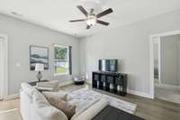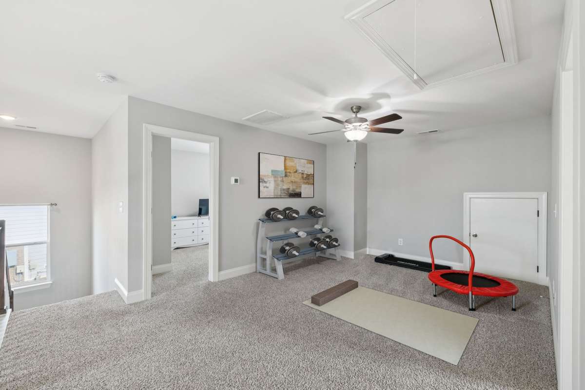Freshly painted and move- in ready, this 2021 build offers a highly desirable and functional floor plan with a main- level primary suite, dedicated home office, and an upstairs loft providing true secondary living space. The bright living room opens to the kitchen, creating an easy flow for everyday living and entertaining. The kitchen features granite countertops, stainless steel appliances, a pantry, and a large island with seating. A separate dining room adds flexibility for hosting, working, or additional lifestyle needs.